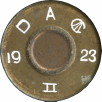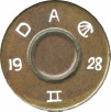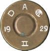 With hostilities breaking out in 1914 there was a real need to train a large number of men relatively quickly in the use of the service revolver and by the end of WW1 a drill round was approved as “CARTRIDGE SA DUMMY REVOLVER .455 INCH MARK I” in June 1920. Cases were of white metal with 3 red indented flutes with the primer being a red, fibrous material to absorb the hammer blow. As can be seen below, brass cased versions also existed. With the title change in 1922 to “CARTRIDGE SA DRILL REVOLVER .455 INCH MARK I” and the Mark number was added to the headstamp as can be seen below. In 1927 the designation was changed again to “CARTRIDGE SA DRILL REVOLVER .455 INCH D MARK I” and subsequent production included the letter D on the headstamp.
