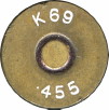 In the beginning of the 1920’s the British were looking for a replacement for the 455 Webley and by the early 1930’s the 380 Enfield was adopted, but the 455 remained in service until the end of WW2. The Mark 6 was the final version adopted by the British and was accepted as “CARTRIDGE SA BALL REVOLVER .455 inch MARK VI (approved September 1939) AND VIz” (approved April 1941). The bullet was the same shape as for the Mark 2 loading but had a GM or CN jacket as lead bullets were seen as ‘unsportsmanlike behaviour’. The 455 Mk. 6 was declared obsolete in 1946 but was manufactured up to the 1960’s on foreign contracts (notably Pakistan). (Erlmeier, Brandt Ref. 465)